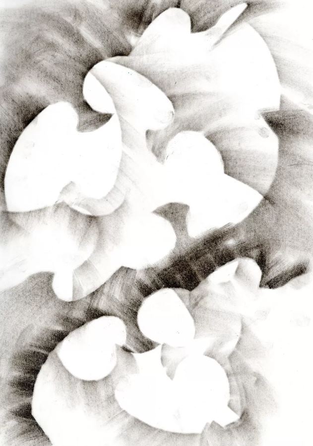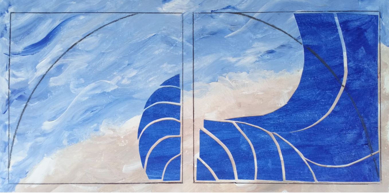 the geometric pattern in the nautilus shell. I was particularly drawn to The Nautilus Shell for its beauty, geometrical shape, symbolism, and its appearance in nature. It is a symbol of nature’s grace in growth, expansion, and renewal and of order amongst chaos as reflected in its spiral precision. The spiral of the nautilus is not just any spiral, measuring it reveals that it conforms to the shape of the Golden Ratio spiral, known as a sacred geometry. I like the simplicity of the artwork and the beauty of the curves, there are many more aspects arising from my research on this project that I will explore, including spirals in nature and different shells, scale, and media. |