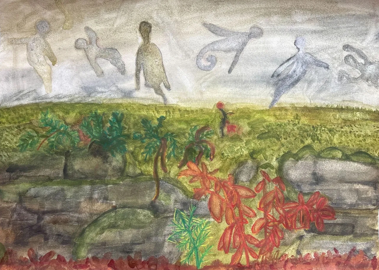 This idea resonated with me deeply. It shifted my perspective, encouraging me to acknowledge and even work with my anxieties about producing and displaying art, rather than allowing them to silence me. My anxiety often urges me to stay on the edge, to hesitate until I feel certain. But the quote reminded me that certainty never comes before the leap—it comes through it. The risk of imperfection, even failure, is what allows the possibility of growth. This work is an acceptance of that creative risk and trust in the process itself.
