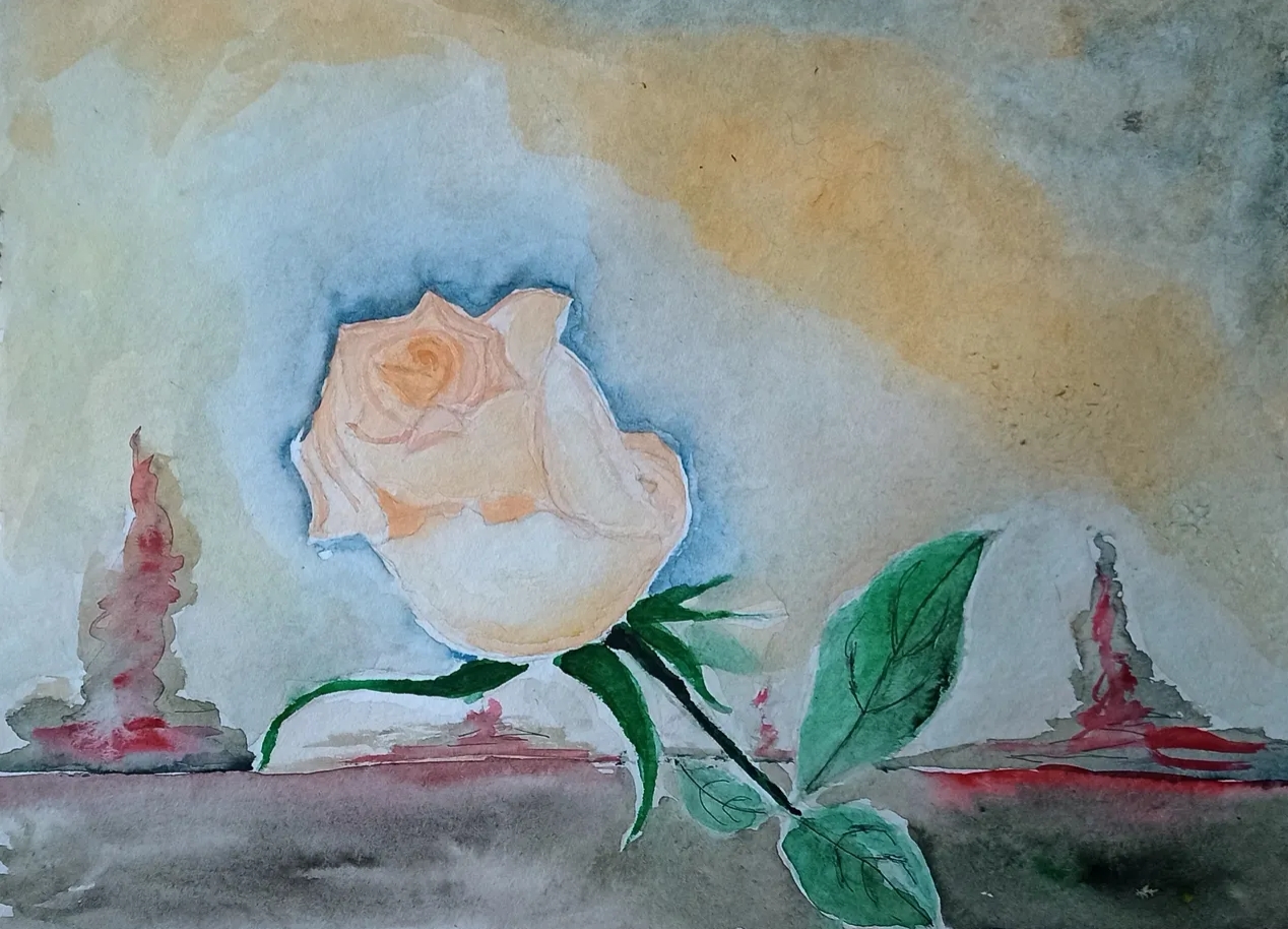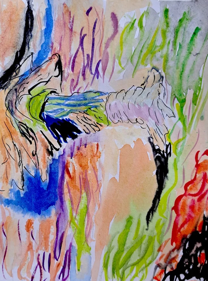 Dali’s “the persistence of memory” painted when he was 28, conveys an overall sense of foreboding, The strong use of shade almost like shadows, the feeling of change of light, the sense of space, distance and perspective, the use of memory and imagination and its possibilities, all within the time factor kept me curious. Drawing plein air in different woods and natural spaces with different media, I became engrossed in shapes and colours that were in front of me, culminating in three paintings, ‘Heart’s sunset’ (above), ‘Mind sunset’ (below top left), and ‘Cosmic night of reality’ (below top right).