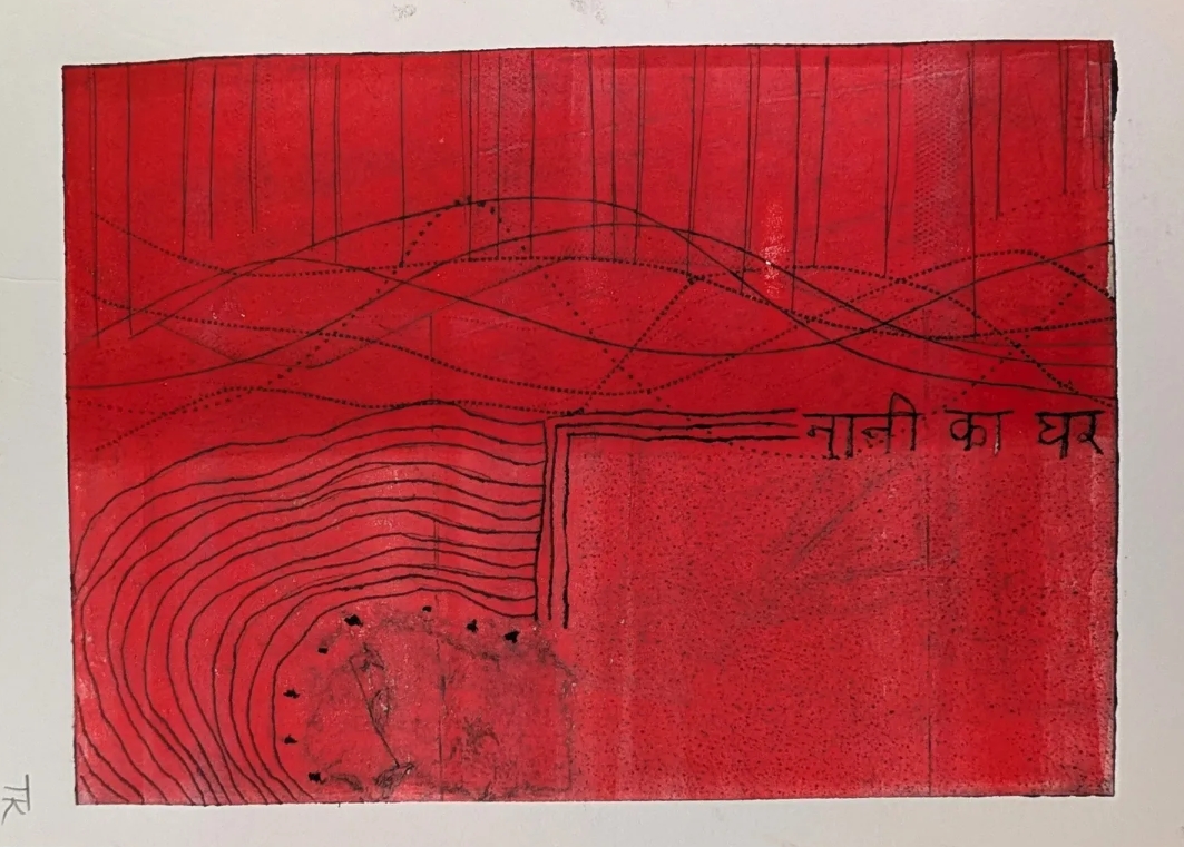 “Tanya Kumar is a British Indian artist working through the complexities of cultural hybridity and chronic illness. Through mixed media work incorporating mark-making, using my hands as implements, and natural elements, I create work that tears apart and stitches together fragments of identity, making visible the ongoing, imperfect process of belonging and reconciliation.”